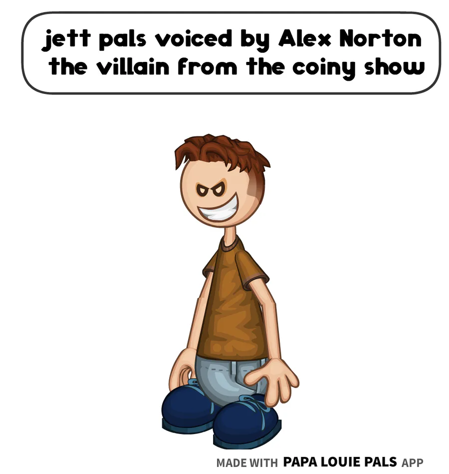 jett pals is voiced by Alex Norton the villain from the coiny show