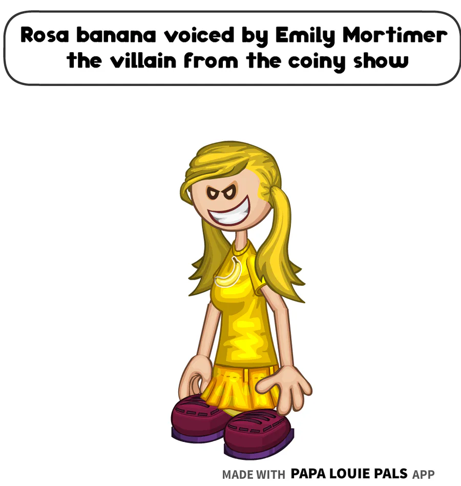 Rosa banana is voiced by Emily Mortimer the villain from the coiny show