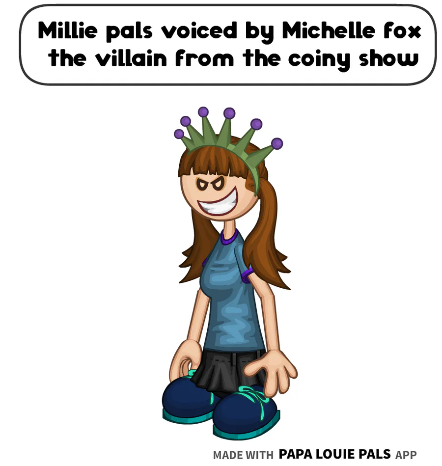 Millie pals is voiced by Michelle fox the villain from the coiny show