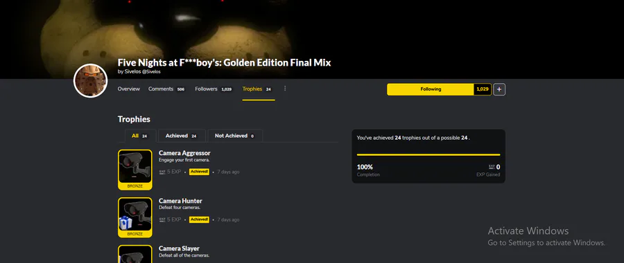 I fucking did it, eat my shit i got trophies 100% from fnafb golden edition final mix from sivelos! FUCK YES