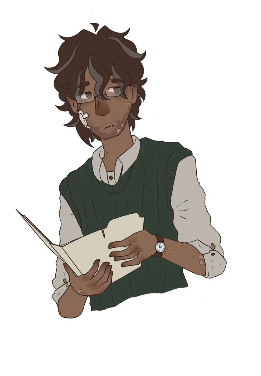 Sketchbook spread I made of Johnathan Sims from The Magnus Archives