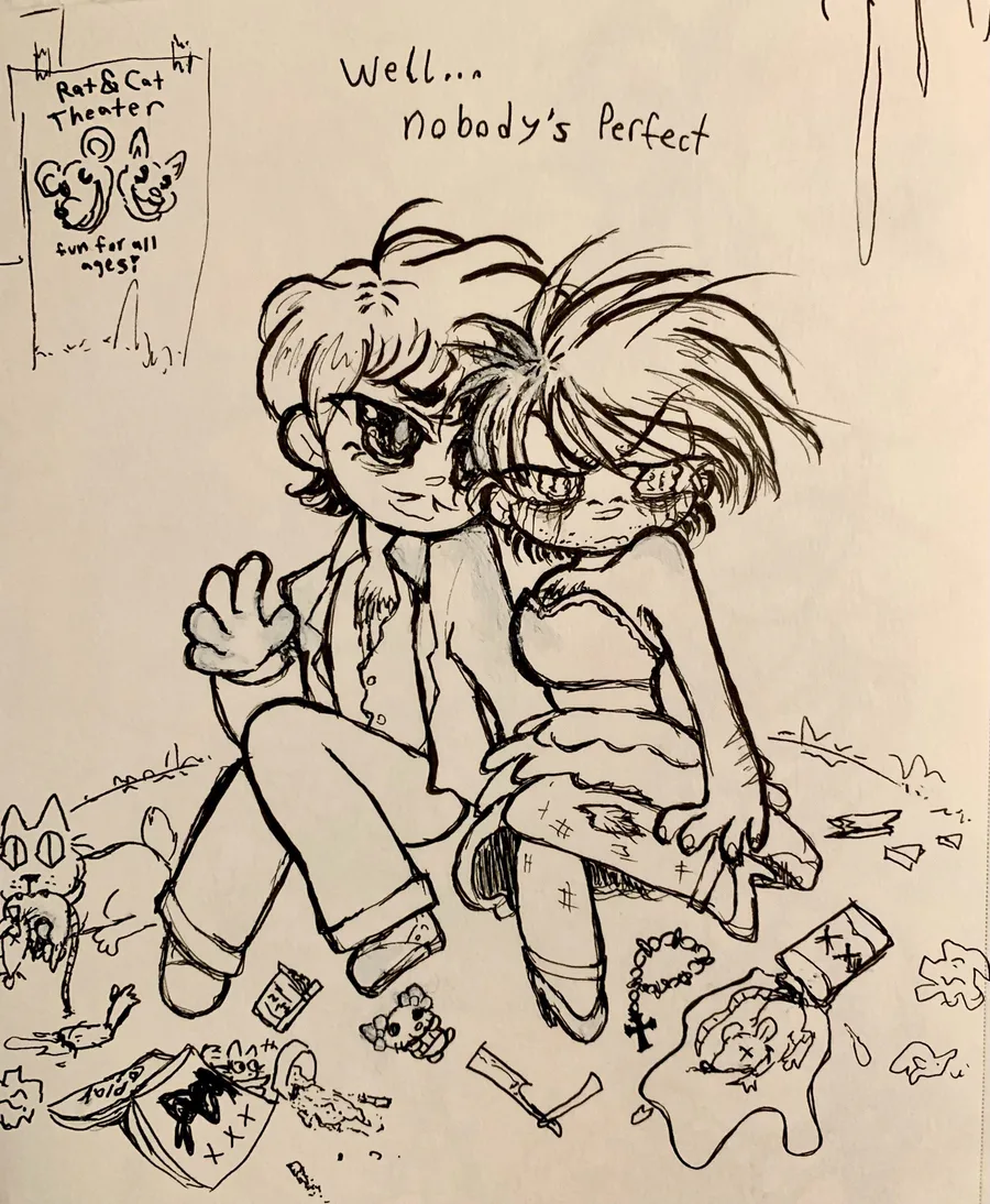 Also mmmmm body horror with symbolism my beloved💗💗 (the skull in that one sketch is a cat's skull👹)