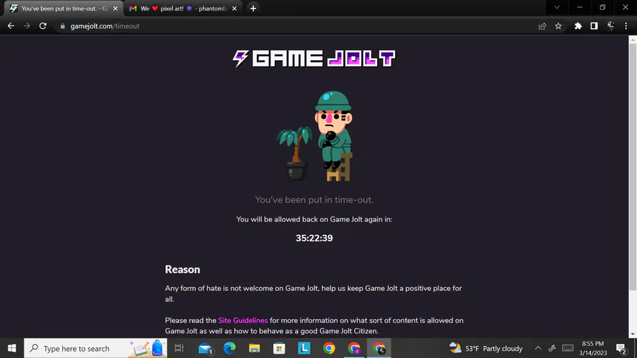 proof that i wasnt lying when i said that my other account @TheOneAndOnlyPhantom is in time out for 2 days also it is to days but i didnt take the pic when it said 48 hours