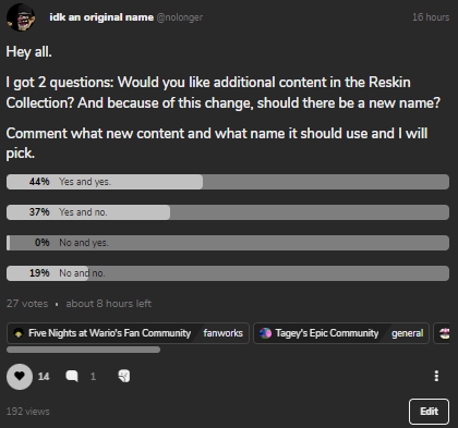 Please suggest a new name to replace the 'Reskin Collection' name and I will add it to a poll, but only 10 names will get in before I make the poll.