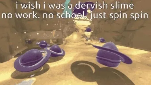 I wish I was a dervish slime no homework no work no school just spin spin spin