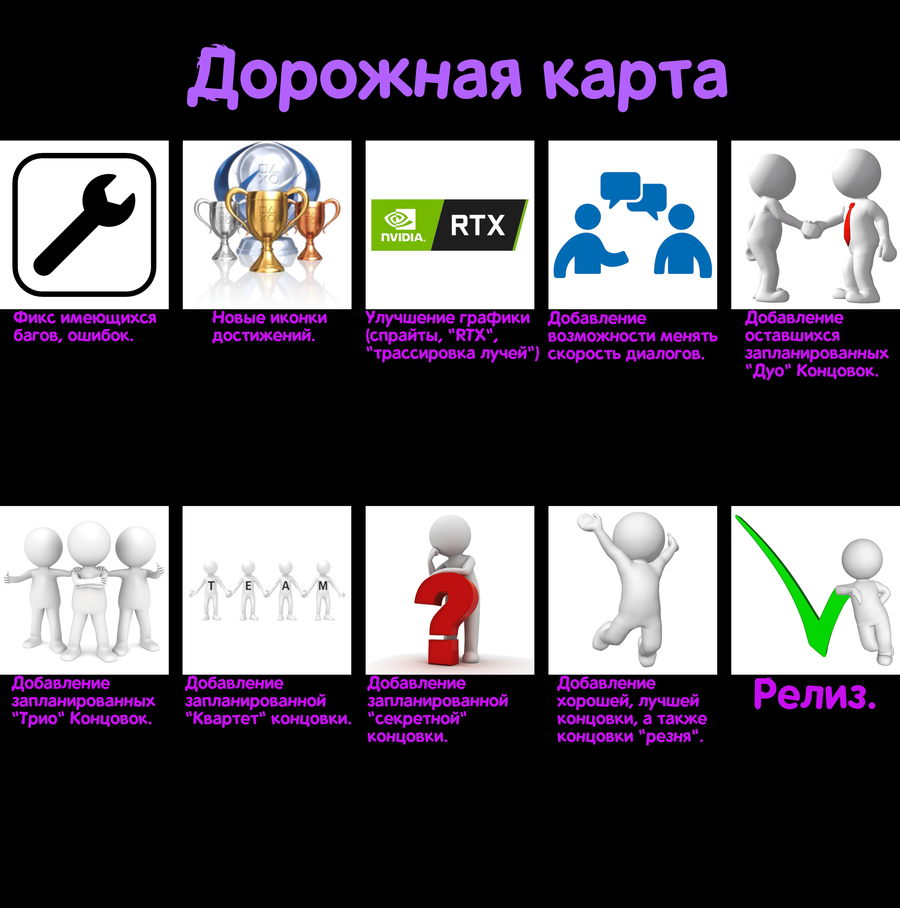 5,6,7,8,9) Это всё добавление запланированных ранее концовок (их список можно посмотреть в одном из моих старых постов). Также будет добавление пасхалок практически на каждой из них.