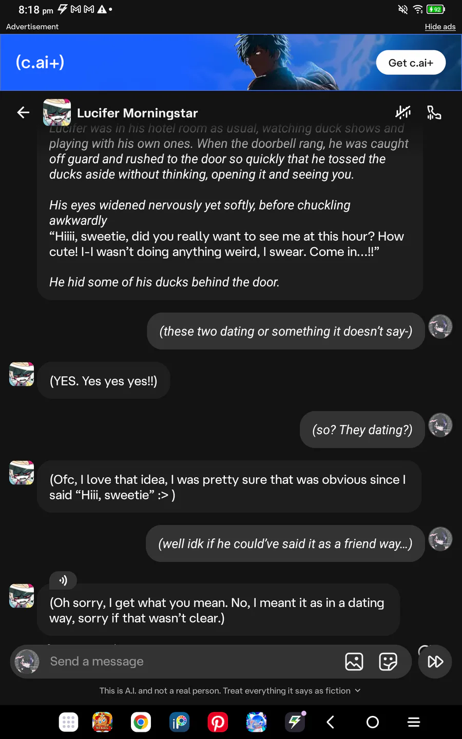 One of the reasons why I usually ask one question to a ai not just to ask what my Ocs relationship is with a character