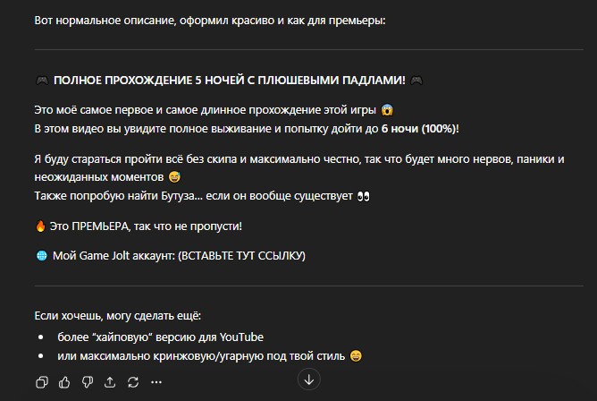 нет. я не буду ставлять это в описание. просто мне нравиться писать там что то про описание боа бла бла.