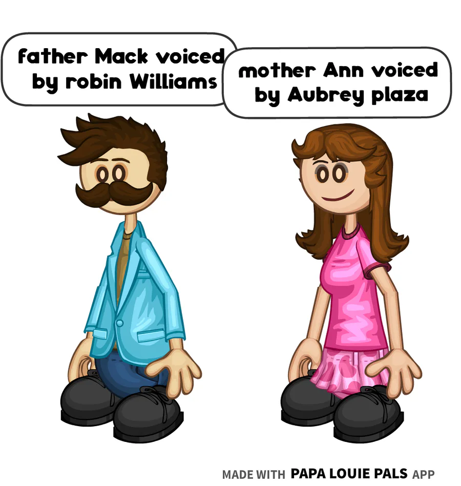 father Mack is voiced by robin Williams mother Ann is voiced by Aubrey plaza from the coiny show