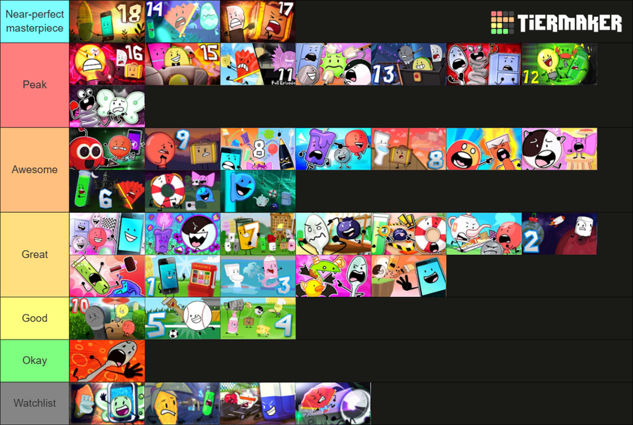 BFDI Season 1 Tierlist