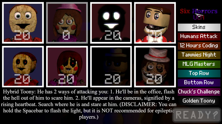 FNaTI: Core Collection (1.0 (Remastered Setting), 2.0 (Remastered Setting), 3.0, OC, 4.0 (4.5 Skins, NBD Skins, NBD 2 Mode), 5.0 (V1 and V3 Settings)): ambitious
