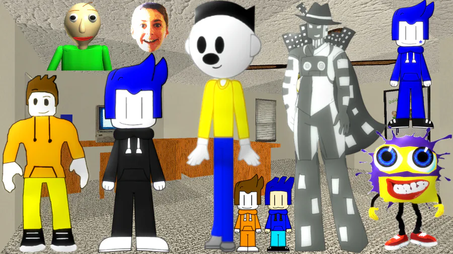The entire group in mystman12 office including Clerance and me and the full logo characters