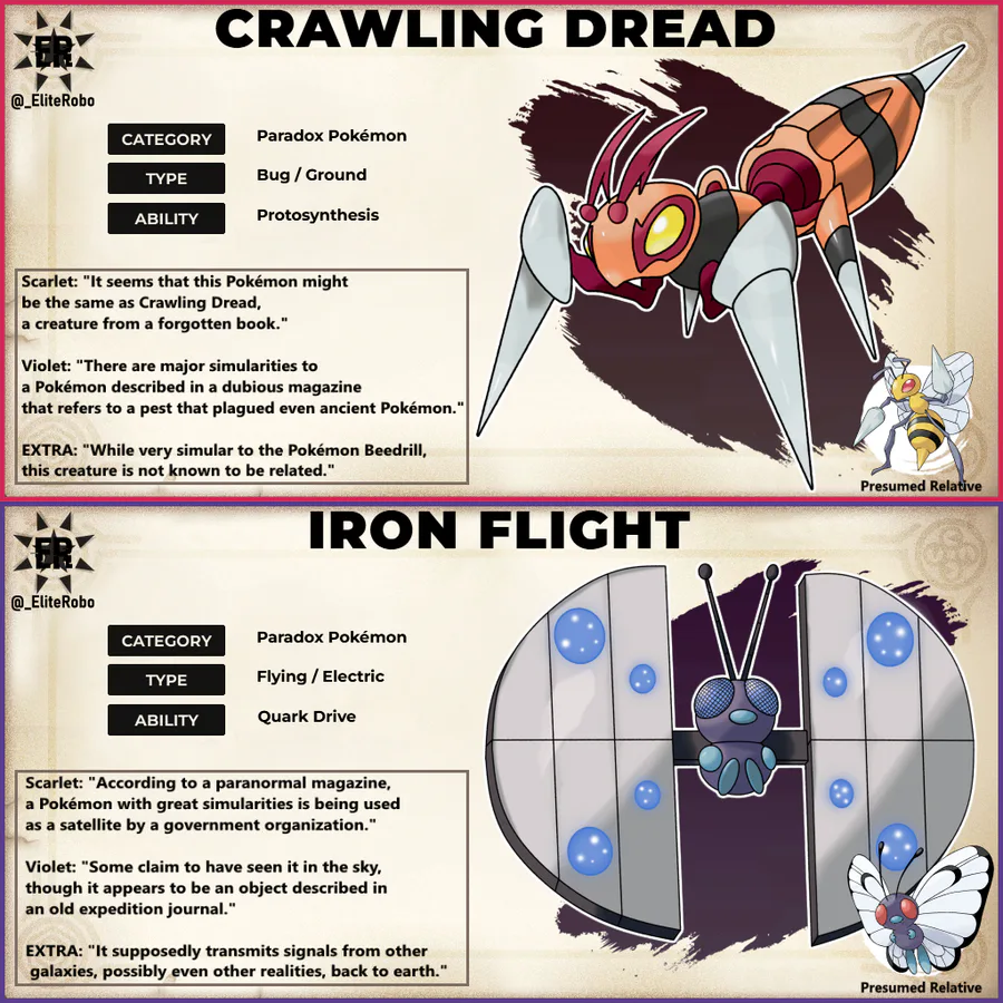 Crawling Dread (Ancient Beedrill) - Bug/Ground & Iron Flight (Future Butterfree) - Flying Electric By EliteRobo.
