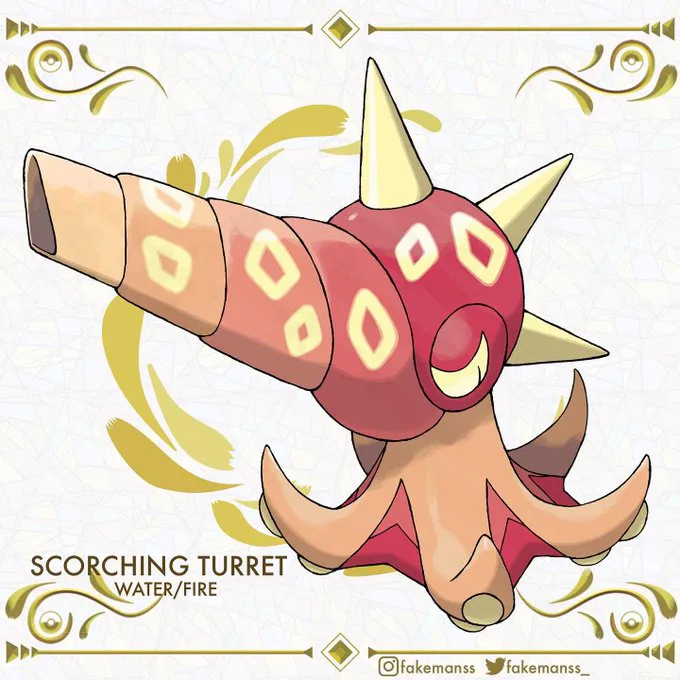 Scorching Turret (Ancient Octillery) Water/Fire By Fakemonss.