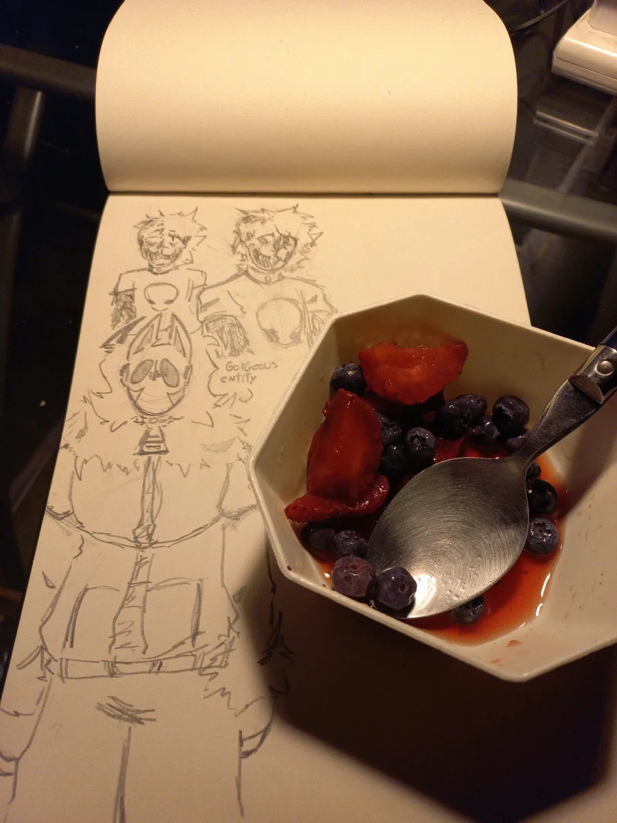 yk, drinking a sprite and eating berries while drawing seems something to calm off my mind.