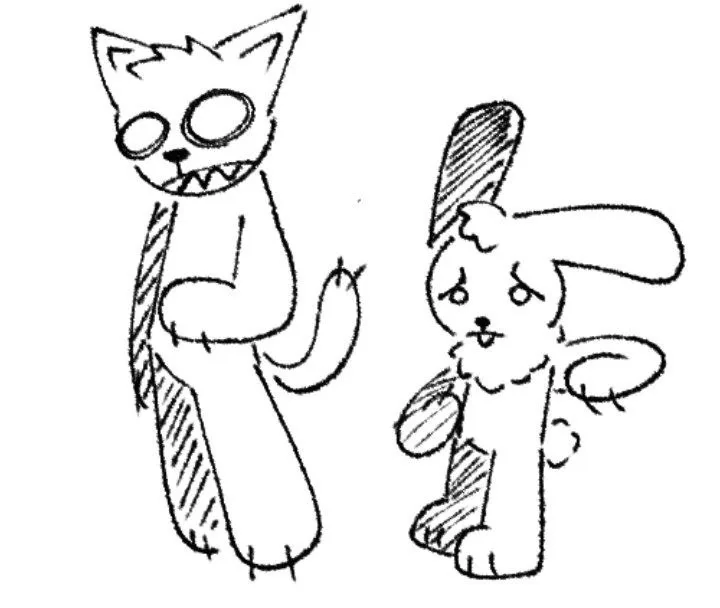 этих персонажей я сделал когда я был во 2 классе после контрольной(они не выглядели прям так)