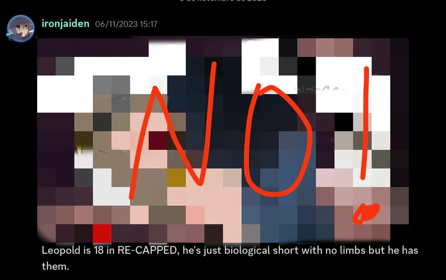 Final statement about Jaiden, even there's allegations of Jaiden's fetishes and support pedos, there's a censored NSFW artwork of Leopold (Norman) and Isabella, decided to aged up Leopold as "18" while Norman's famous video was 15 years old on that time.