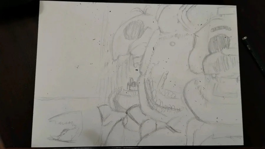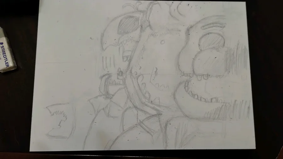 Springtrap, on an A4 paper, the black bg is 14b faber castel pencil and with some coloring pencils on springtrap