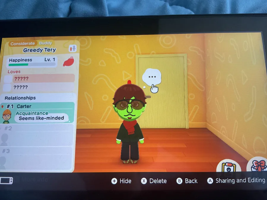 Quick thing tomodachi life living the dream demo came out today and I’m not letting Nintendo stop me from sharing this Chill Tery is back but now he’s greedy in the sequel after a witch turned him into a money hungry goblin businessman what could go wrong