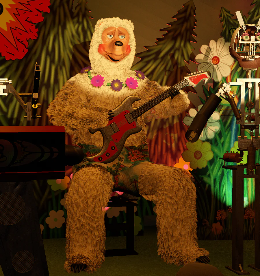 Latex paws and guitar cosmetics for Beach Bear and Billy Bob