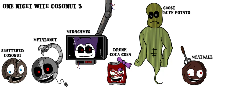 Hello Hello! I make another redesign of Five nights at Coso's characters. + Bonuses! Mida-Tronic and Origin Old Coso