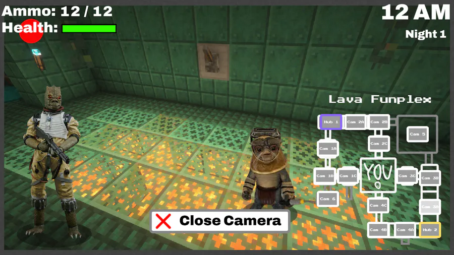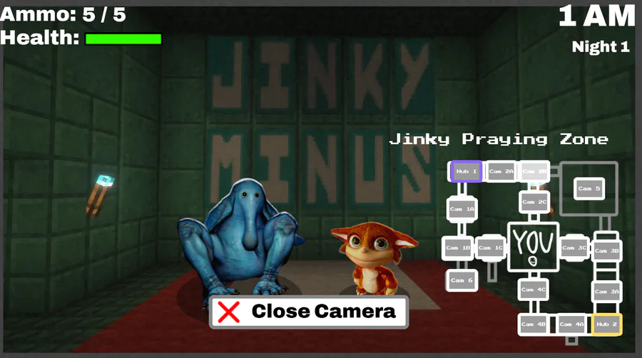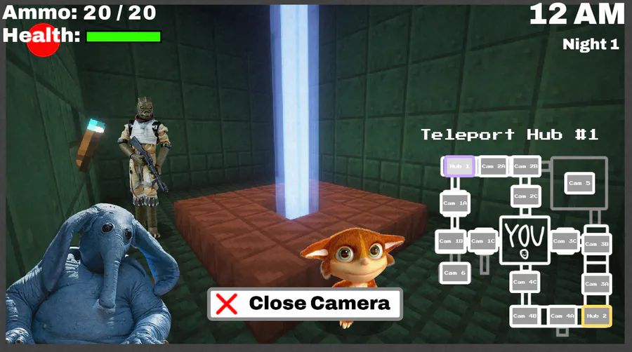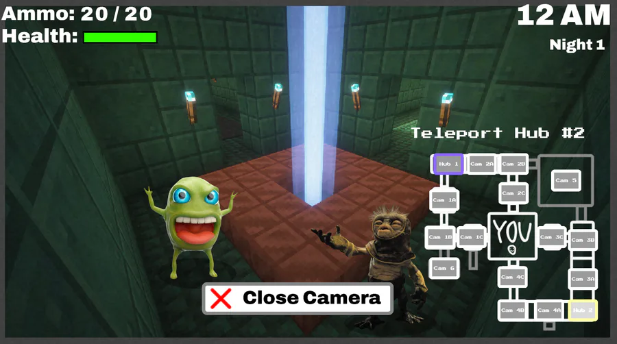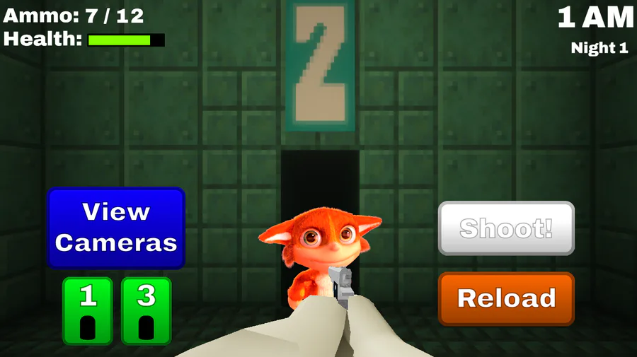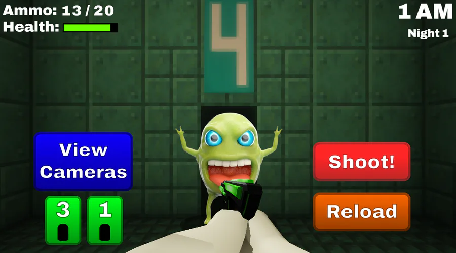 You can choose between nine different guns which each have different stats, the enemies can each go to different hallways and will attack you from one of four doors. The game is also going to have an ally mechanic where you can choose between 4 characters from the previous 3 games which each provide minor buffs, but I haven't actually coded that in yet.