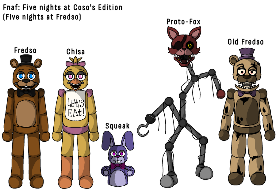 Hello, hello! I'm back again. This time with updated character designs from "Five Nights at Coso 2," and as a bonus: SpringCoso endoskeleton.