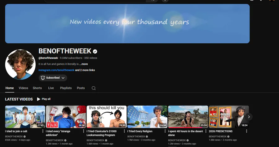 I love BENOFTHEWEEK, his content is serious and unserious at the same time. He prank calls a russian military base, freaks, logged onto 7 snapchat accounts and messed around and so much more. If you haven't checked him out, please do. He's extremely funny
