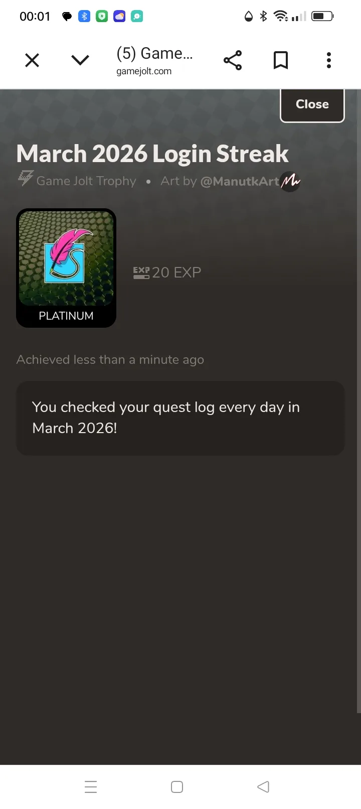 I collected it at 00:01