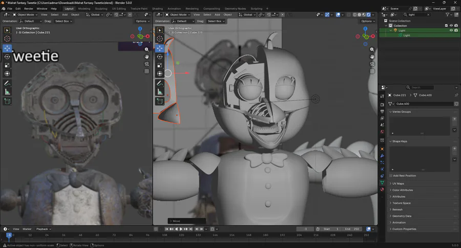 Haven't posted my blender models in a while, been practicing and I've gotten way better heres a wip of me making a fantasy tweetie model for fun