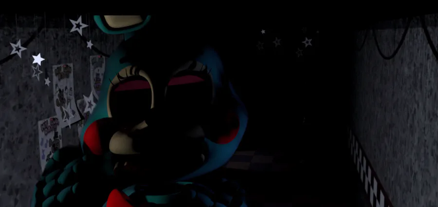 Decay Chica – body parts are partially nonfunctional, yet still active; behavior combines sudden jumps with careful observation of the player.