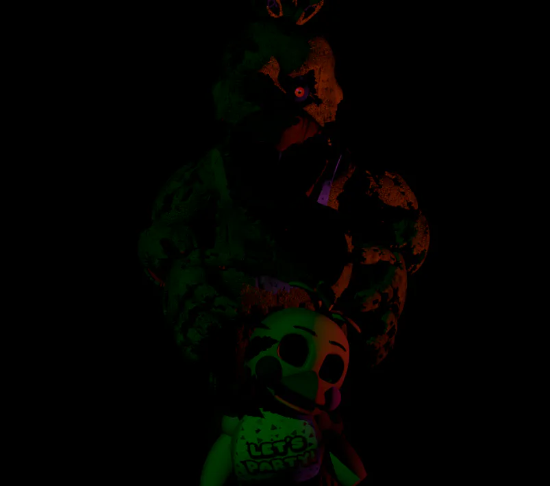 Decay Bonnie – torn limbs, faulty mechanisms, unpredictable movements; keeps the player on edge at all times.