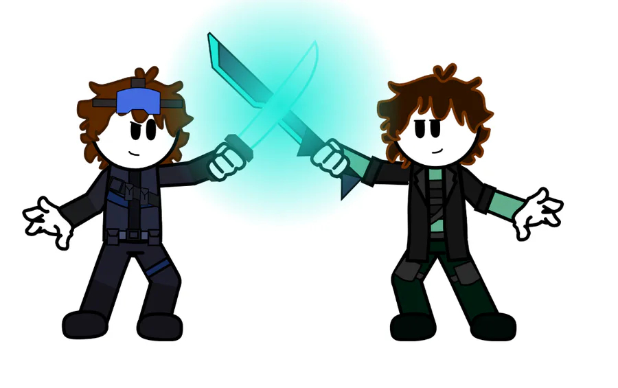 When Sky and Clyde exchange/cross their weapons, the color of their weapons becomes turquoise.