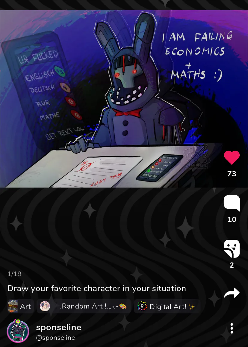 Friends. I might be failing this class and won't graduate. The fucking withered bonnie joke drawing has now become "i am failing". But hey, at least the stress will be gone, so actually this is a VERY good thing lol. If i mess up i'll make a sequel.