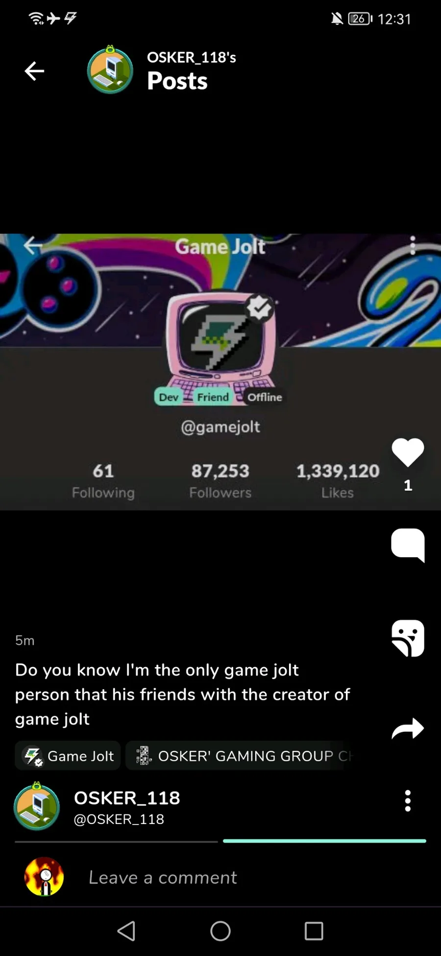 gamejolt did NOT friend you lil bro🥀