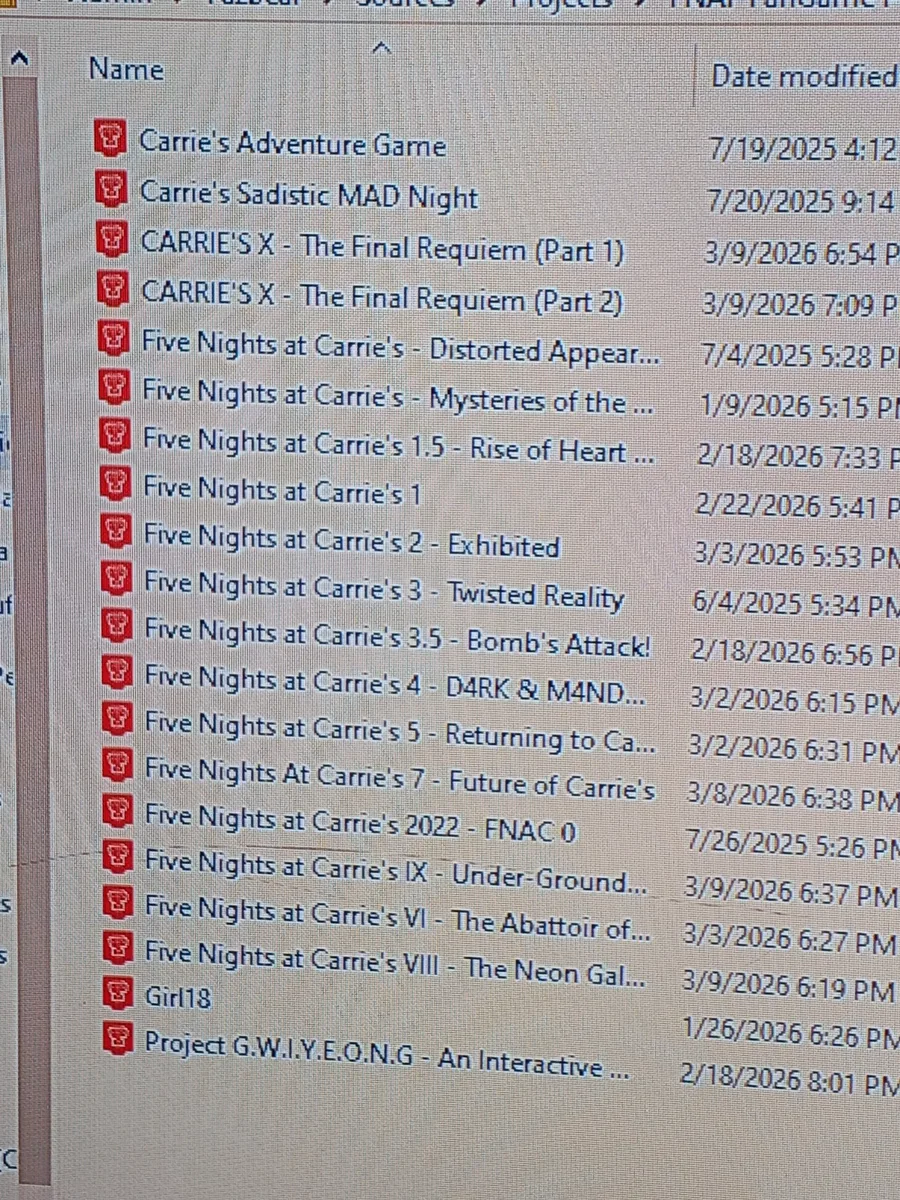 English "I am absolutely honored to announce that we have officially hit 1,000 views on the game page! Thank you all so much for the support and for taking this journey with me and Carrie. Creating Five Nights at Carrie's has been an incredible experience, and I’m not done yet. As a special thank you, I’m excited to reveal that the series will consist of 10 Chapters in total! Get ready—the world of Carrie is much bigger than you think!"