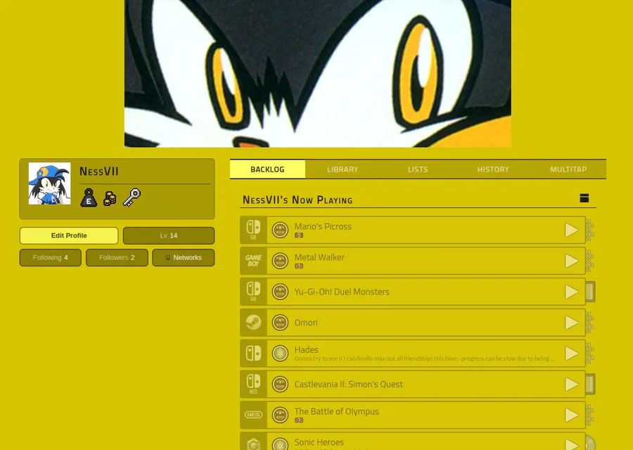 Hey, heads up! If any of you have a Backloggery account, follow me here: https://www.backloggery.com/NessVII