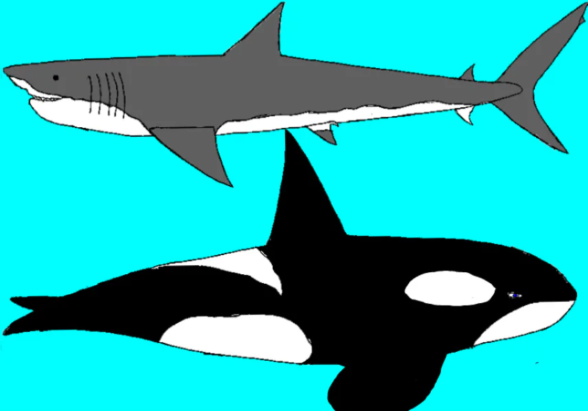 My Drawing Of Great White Shark (Carcharodon Carcharias) And King Killer Whale (Orcinus Orca) The 2 King's Of The Ocean!. (No Hate!).❌