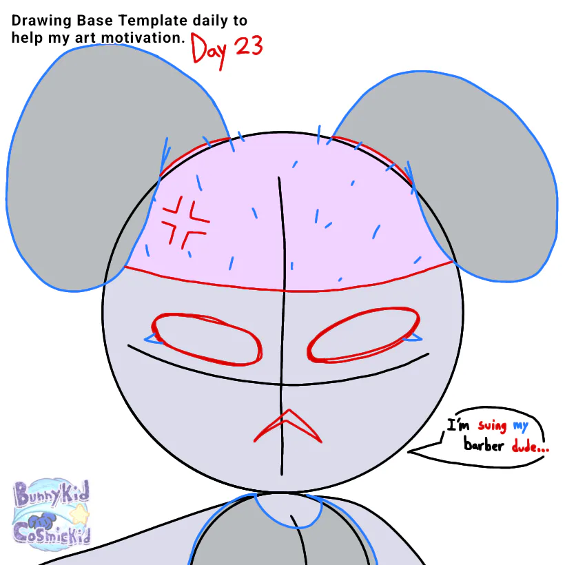 Drawing Base Template daily to help my art motivation. Day 23: Got a haircut today so I let Base get one as well - Sadly, I think their barber messed up...