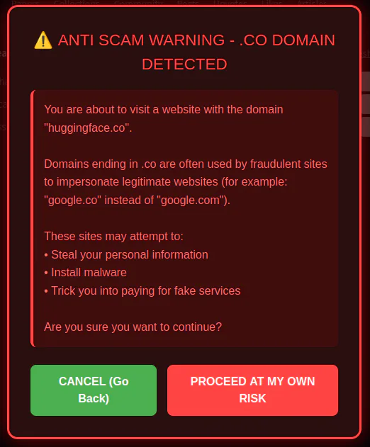 Teaser FireFox Extension - Anti Scam bc yeah if yu don't some scammers use .co instead .com to tricks some users