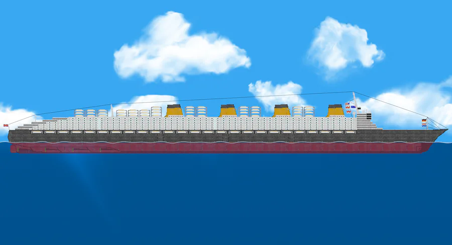 (I used Tripo AI and Hitem3D to generate these ships for Floating Sandbox) Greatest Grandeur is heaviest, most horsepower, widest, tallest, most capacity, Biggest, Fastest ocean liner (fictional only by United States Lines is more capacity than Icon of the Seas, bigger than I.K.C. Krafting, Icon of the Seas, A.R.C.C. Isla Del Sol, M.S. Poseidon (2006 movie), Great Grandeur (biggest available ship in Floating Sandbox game), bigger than and faster than S.S. United States (The Big U), longer than Transatlantic Liner of the Future (was a theoretical design for a superliner that would have shattered every record in existence, Length: 1,350 feet (approx. 411 meters). For context, the Queen Mary 2 is 1,132 feet, Tonnage: Estimated at over 150,000 GRT (Gross Register Tonnage), Propulsion: A massive 6-shaft electric drive system producing 396,000 horsepower, Speed: A sustained service speed of 37 knots, designed to cross the Atlantic in less than 4 days), Princess Kaguya (largest proposal in 2007 proposal for an "International Urban Cruise Ship" that aimed to bridge the gap between a traditional liner), S.S. Titan (A more recent specific "ocean liner" concept (distinct from a cruise ship) is the SS Titan. Envisioned by enthusiasts as a spiritual successor to the Titanic, it was proposed to be the "largest, longest, and fastest" liner of the modern era)), longer than S.S. Goodwill (often paired with a sister ship, the S.S. Peace) was a proposed super-liner from 1959 that was never built. It was the brainchild of hotelier Hyman B. Cantor, who envisioned a "Sea Coach" service that would revolutionize transatlantic travel by making it affordable for the masses, S.S. Peace (often paired with a sister ship, the S.S. Peace) was a proposed super-liner from 1959 that was never built. It was the brainchild of hotelier Hyman B. Cantor, who envisioned a "Sea Coach" service that would revolutionize transatlantic travel by making it affordable for the masses) with length to 845 meters, wide 69 meters, height 118 meters, with speed 81 knots (149 km/h / 93 mph), with capacity 65,200 people, Installed power: 1,550,000 shp (1,155,535 kW) (trials), 1,750,000 shp (1,304,975 kW) (claimed), 2,050,000 (1,528,685 kW) Tonnage: 410,000 GRT, Displacement: 399,000 tons in Floating Sandbox with S.S. United States is real fastest ship