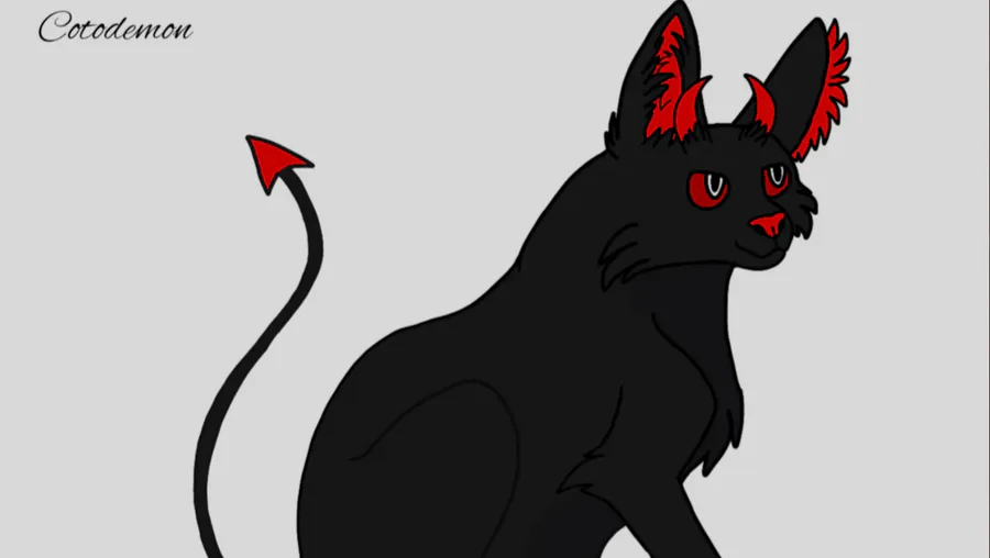 Short story: this is a cat he lives somewhere in the forest, he looks like a hellish cat but his name is Kotodemon.