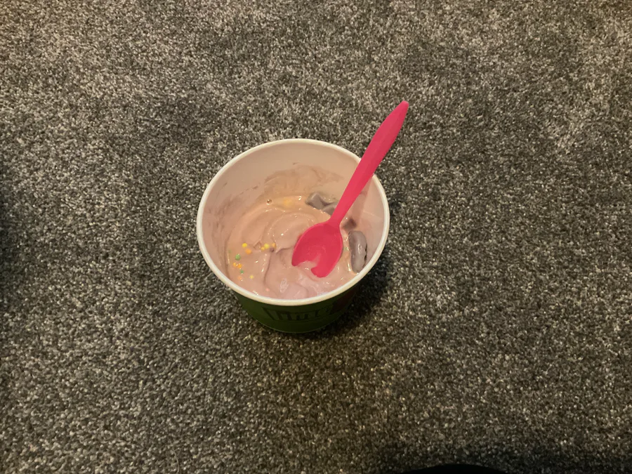We went out to eat and I got frozen yogurt!!! It looks like an abomination but that adds to the charm I love frozen yogurt