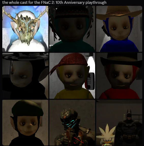 the cast of the FNaC 2 playthrough i might do: Protagonist - 3473 threats - Henry, Snipe, Carnage, Skarloey, Thomas, Aaron and Isaac Clarke (Nights 1-5, Night 7), Batman and Rusty Sonic (Nights 6 and 8)