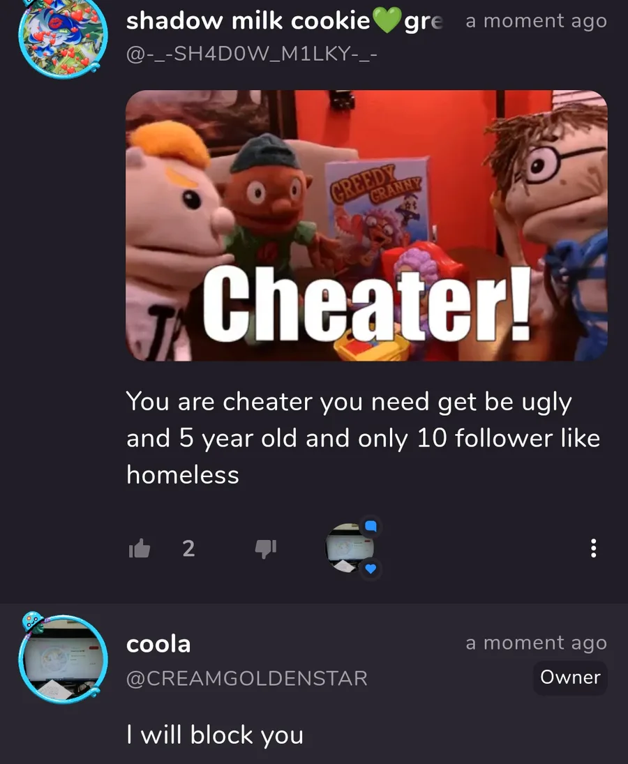 Hey you ugly fuck ass you are cheater you need be 10 follower homeless no father no grandma no grandpa no mother you still HOMELESS BECAUSE YOU ARE CHEATER NOBODY WILL BE YOUR BOYFRIEND BECAUSE YOU 5 YEAR OLD YOU CAN'T SPELL NORMALLY CHEATER NOOB STUPIDAS