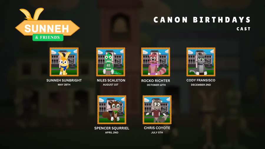 The Official Cast of Characters' Canon Birthdays in Sunneh and Friends!