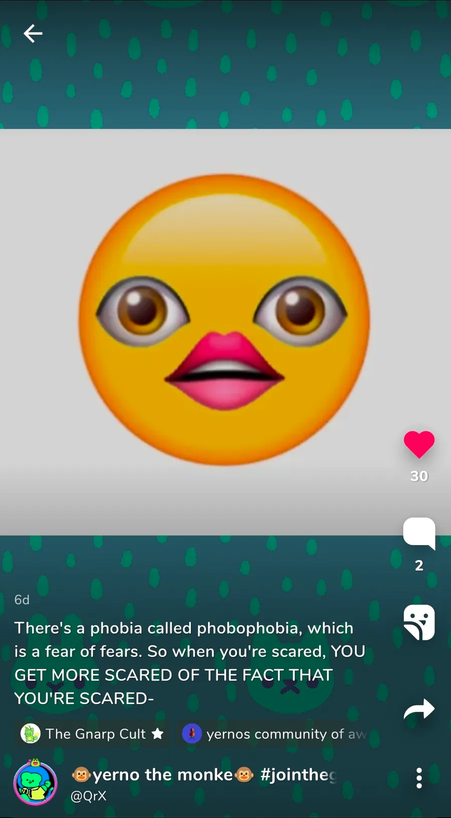 There's a phobia called phobophobia, which is a fear of fears. So when you're scared, YOU GET MORE SCARED OF THE FACT THAT YOU'RE SCARED-