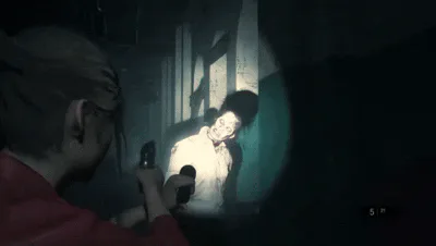 Claire Redfield shooting a Zombie