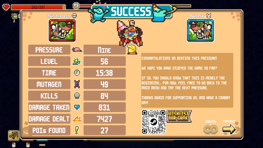Woo! I beat Pressure 5 of #EverythingIsCrab with an especially weird looking creature!