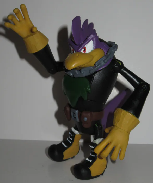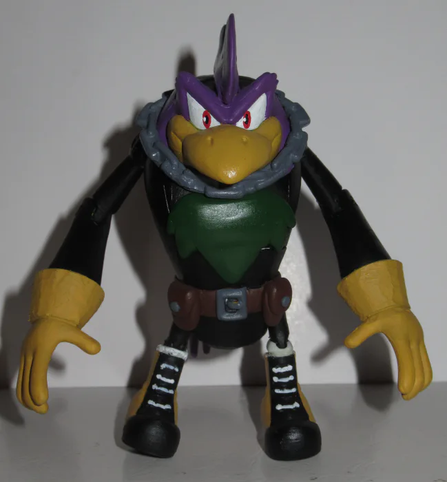 Here's Don and Nite, the preppy owl and goth rooster from the IDW Sonic comic who are almost certainly a gay couple and MIGHT be Vector's parents? Don is made out of a Jazwares Vector and Nite out of a Loyal Subjects Peter Griffin.